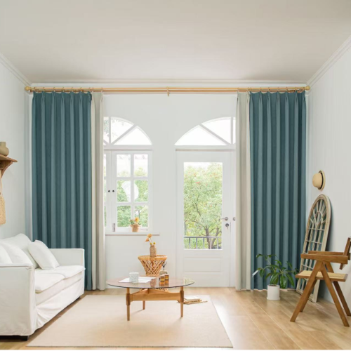 This set of two pastel blue blackout curtains (165x165cm) offers elegant light blocking and privacy. Their soft hue adds a refined, calming touch to any room.